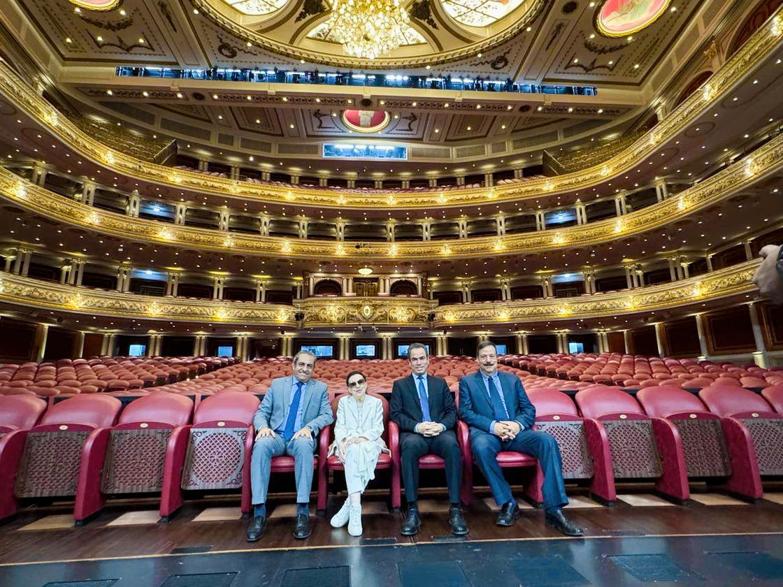ونشر المركز الصحفي للهيئة الوطنية للإعلام عبر صفحته على فيسبوك صوراً للنجمة خلال جولتها داخل المسرح الكبير.